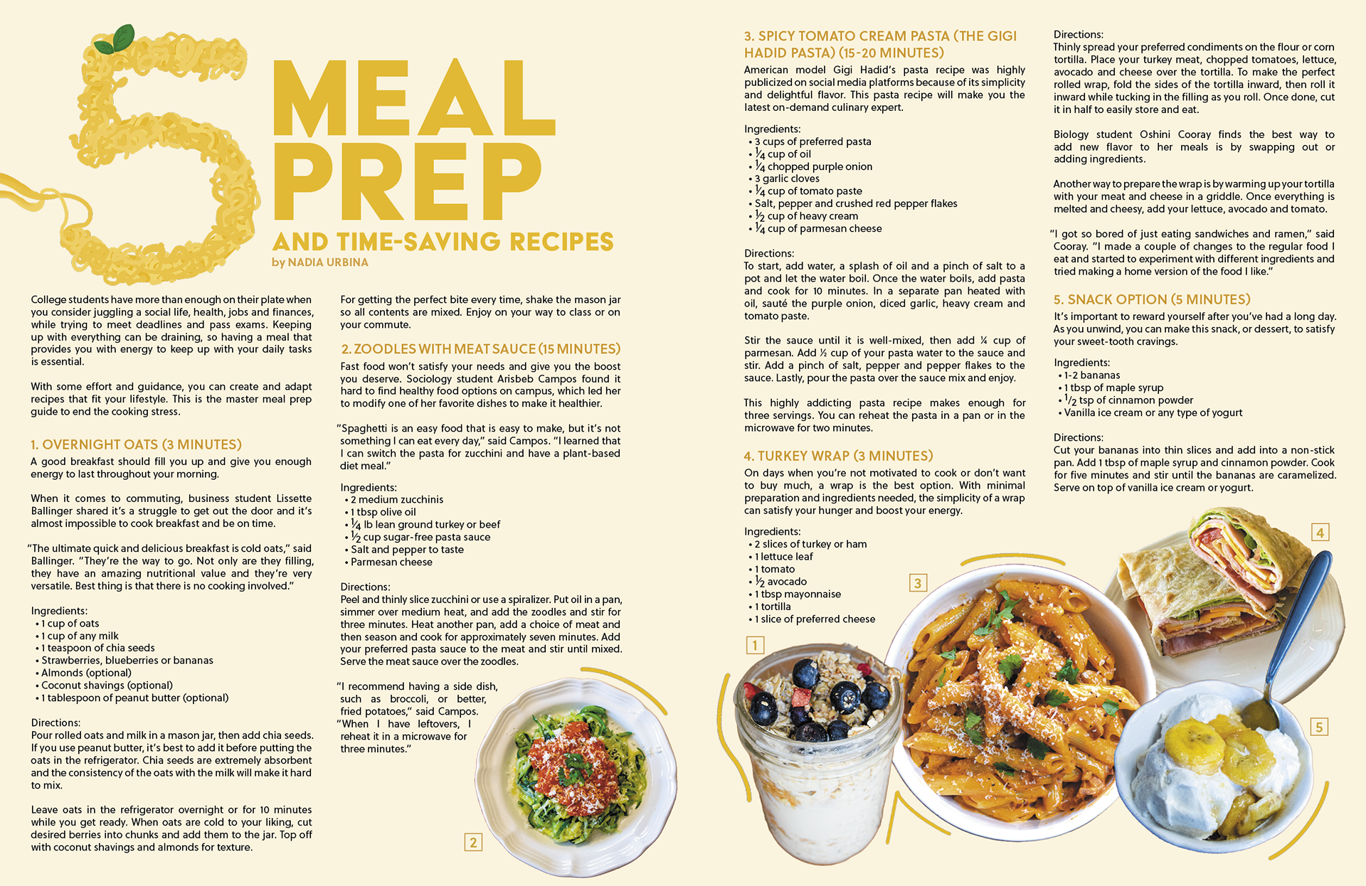Layout spread with 5 recipes (photographs provided by the writer)